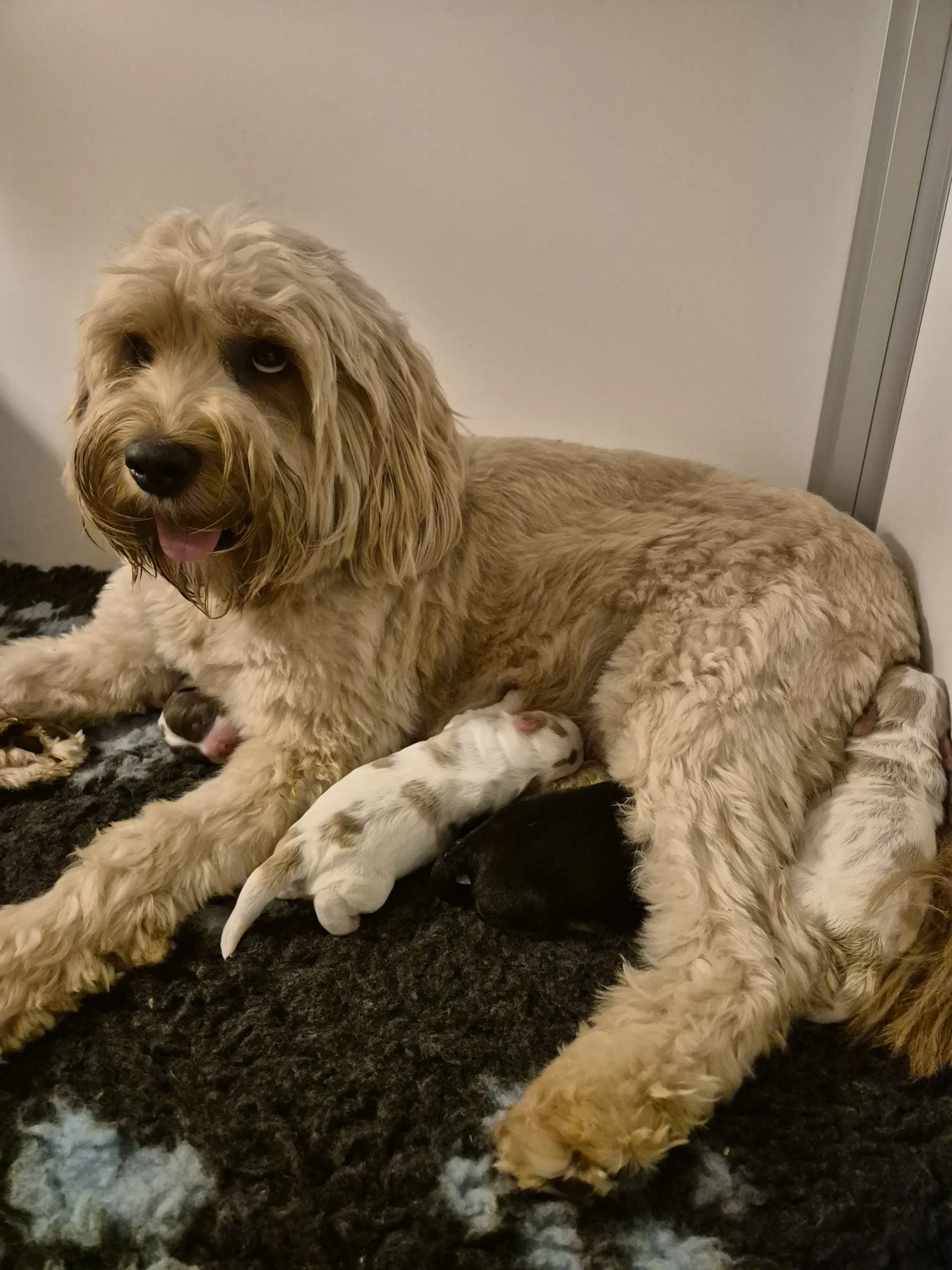 Lieske is op 6 oktober de trotse moeder geworden van 4 gezonde pups. 3 reutjes en 1 teefje.